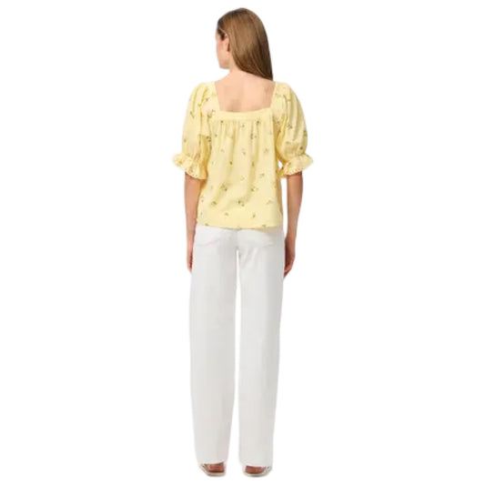 Pieces - Pcthea 3/4 sqaure neck top wvn D2D pp - pale banana Lemons